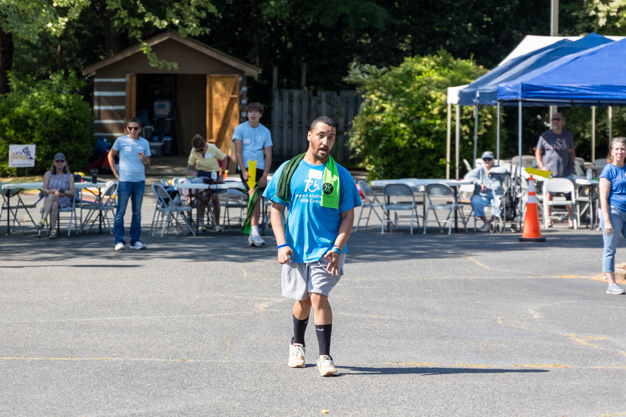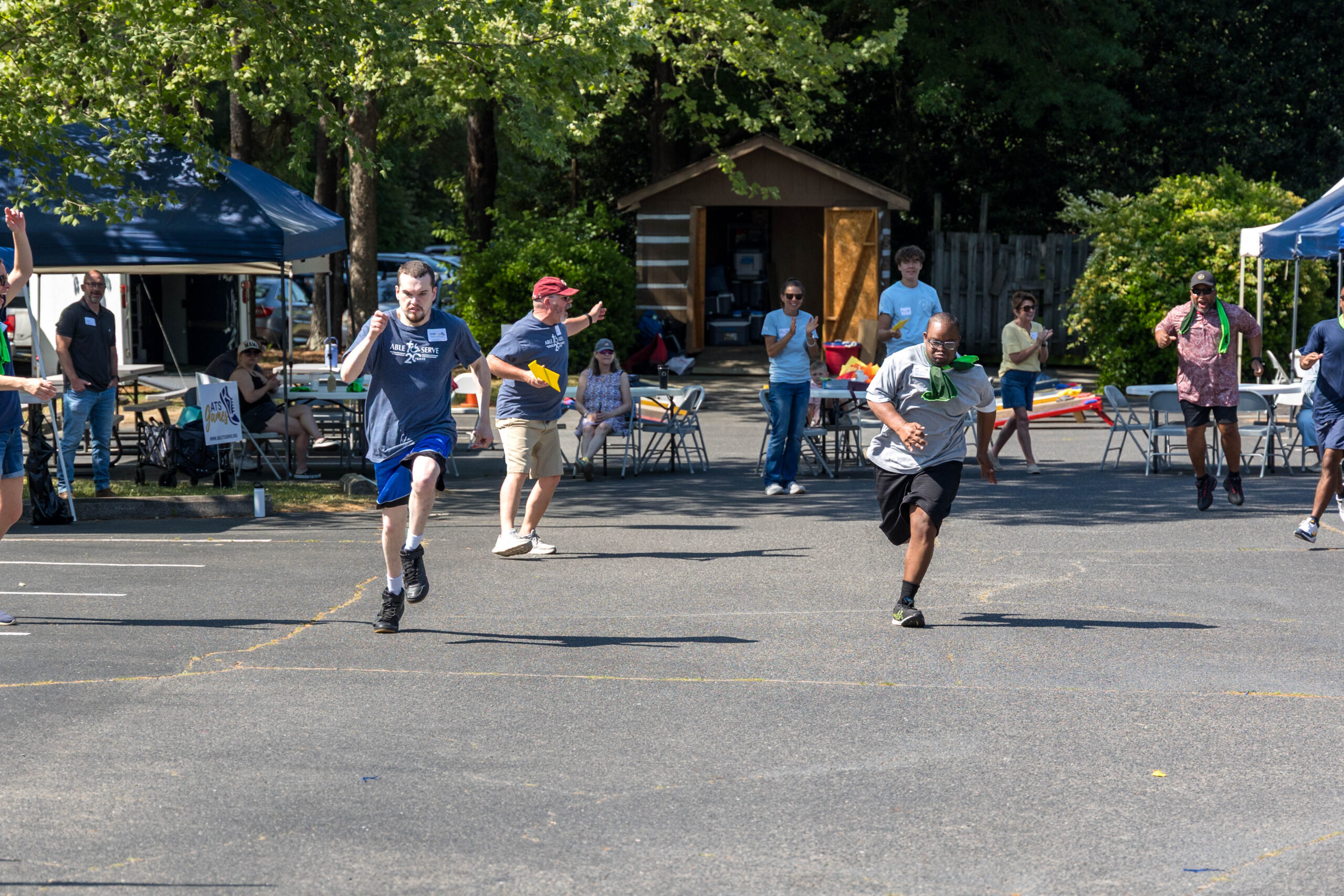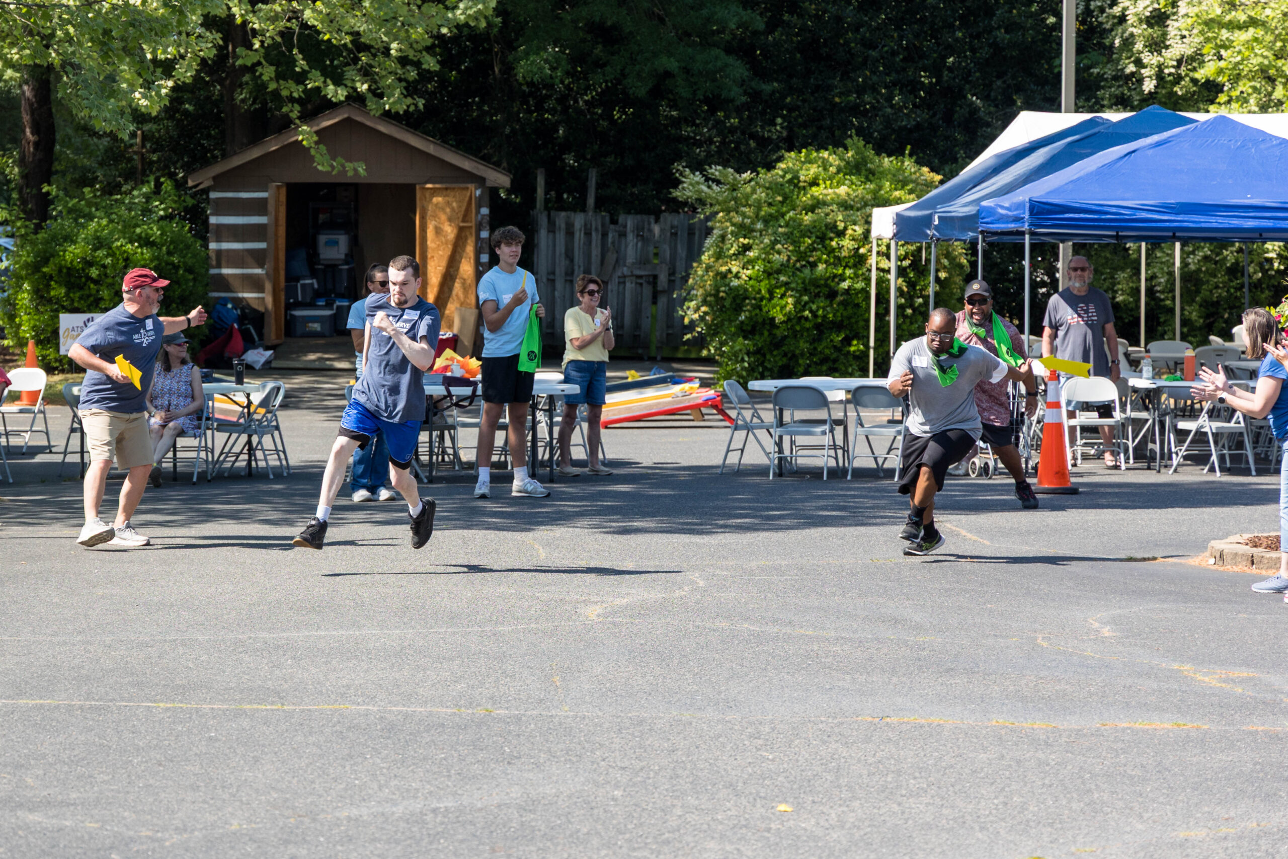 It was a cool morning as staff and volunteers transformed the parking lot into the staging area for the day’s events. The pavement held the racing course, and the grassy areas next to and behind the picnic shelter became softball and bocce zones.