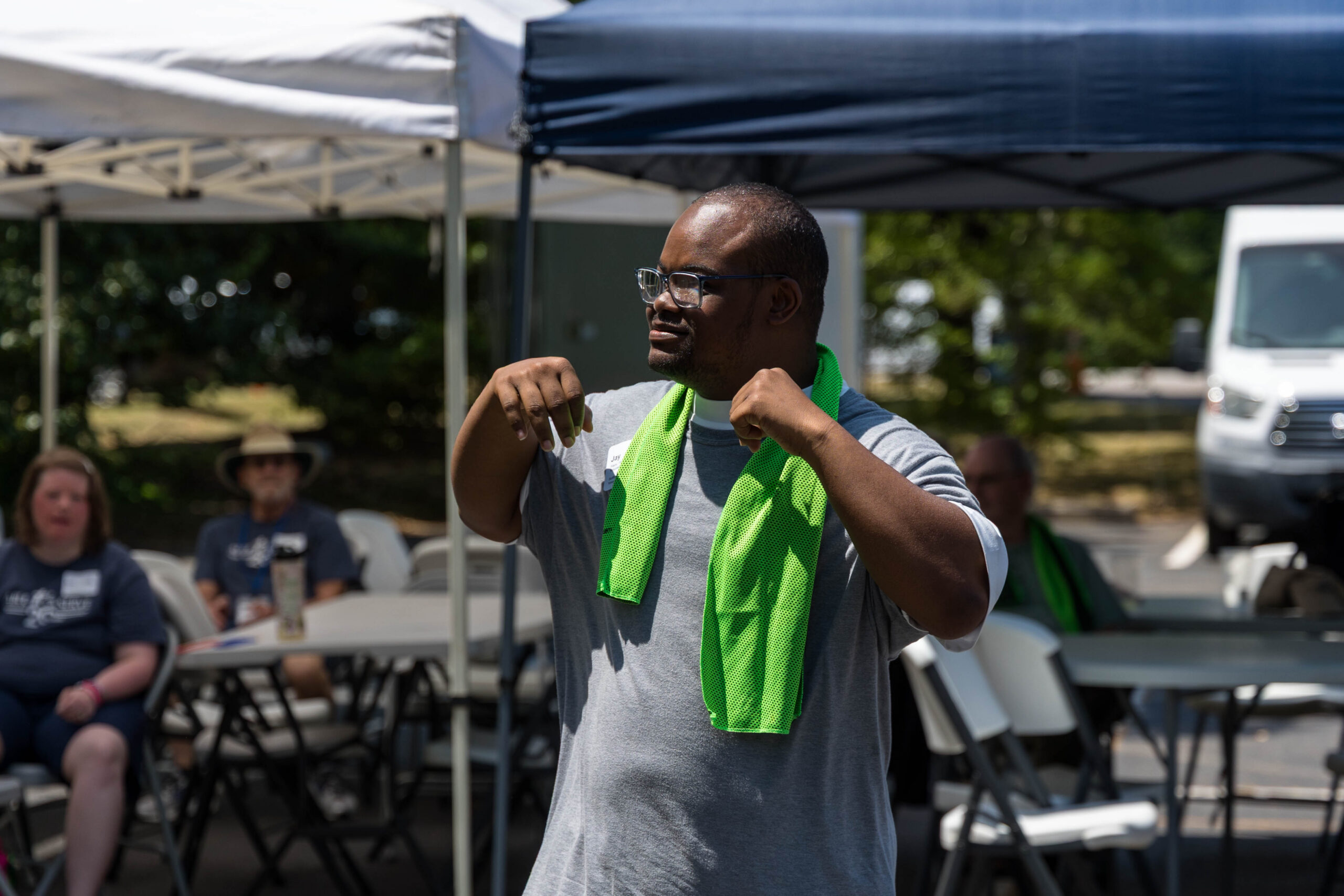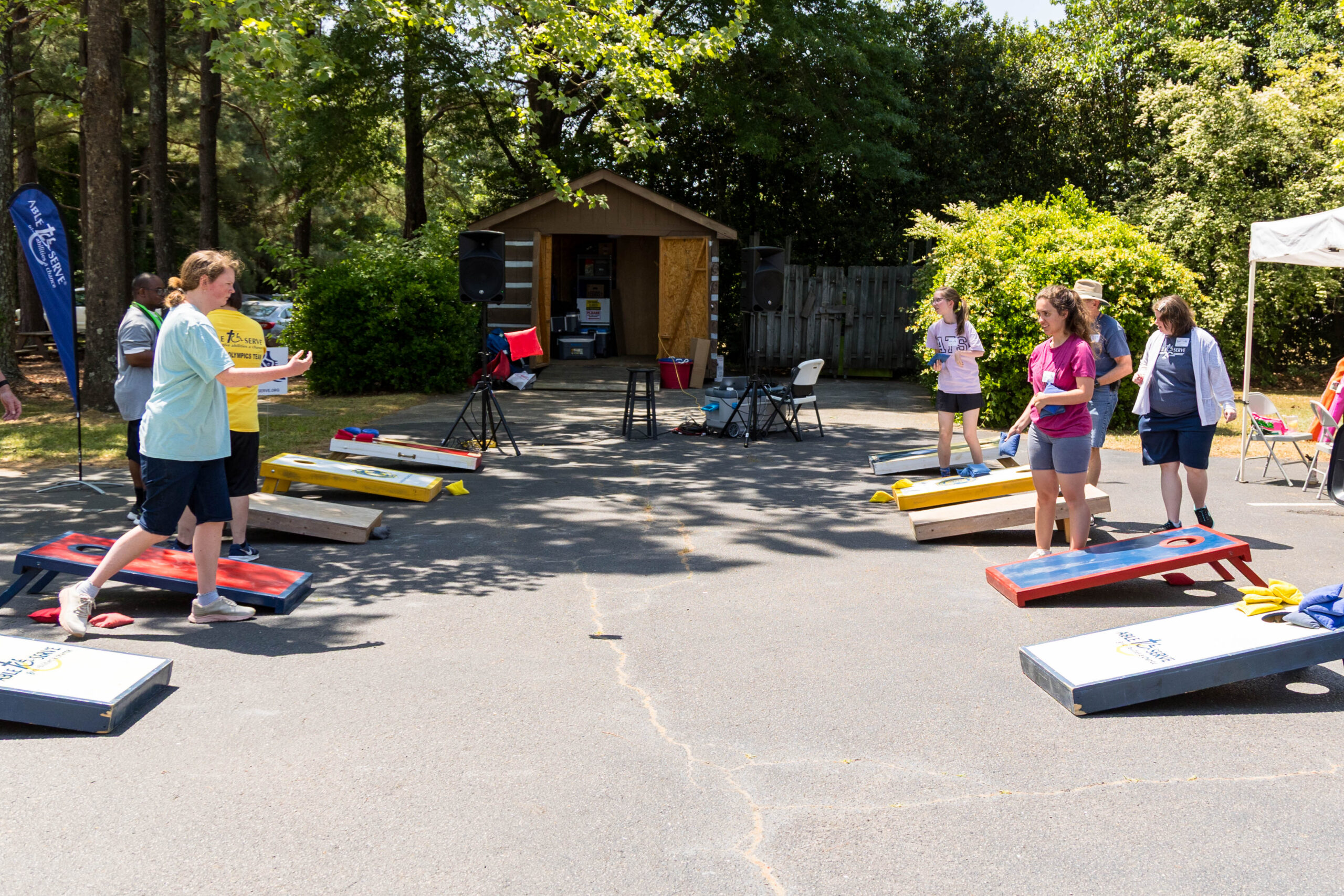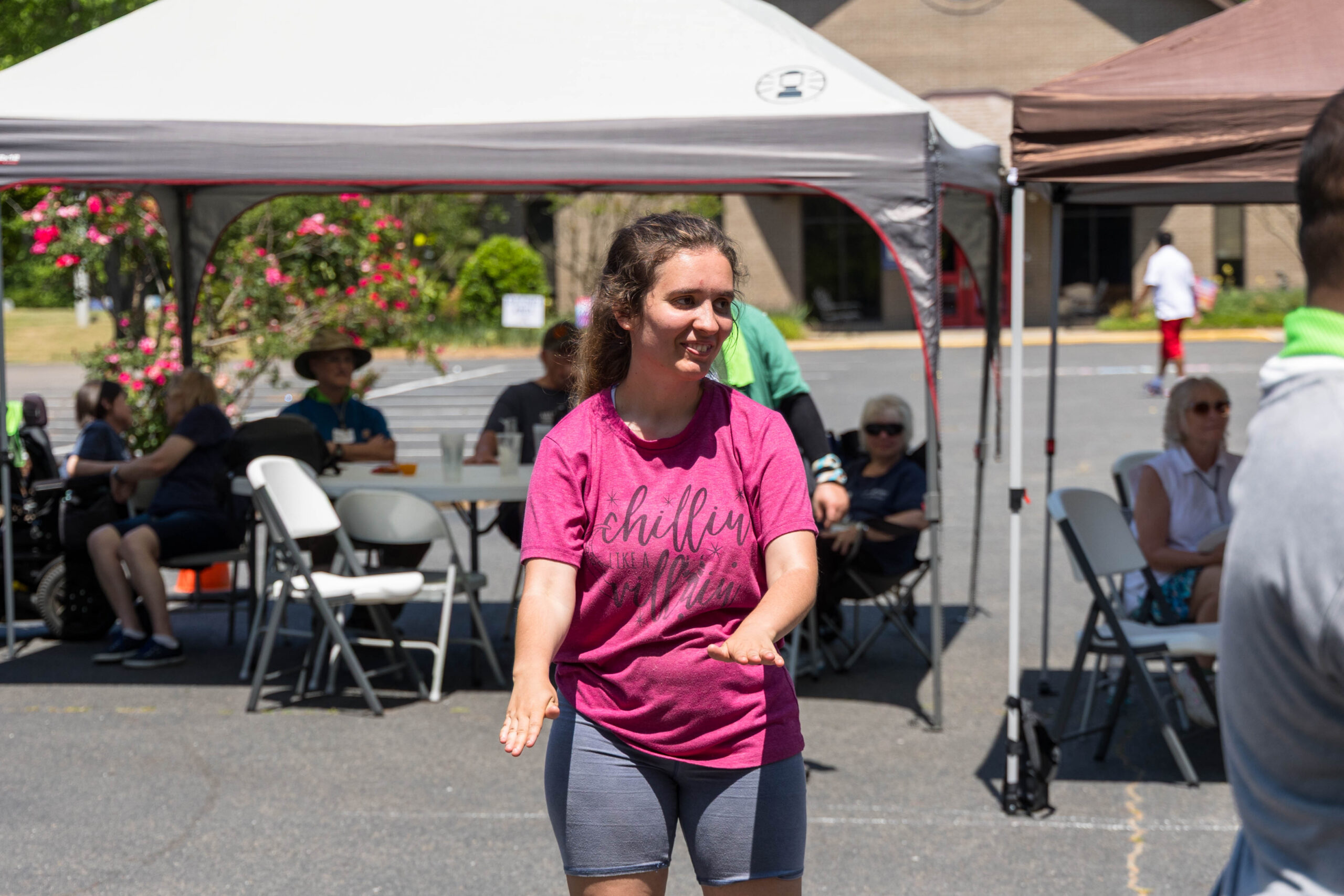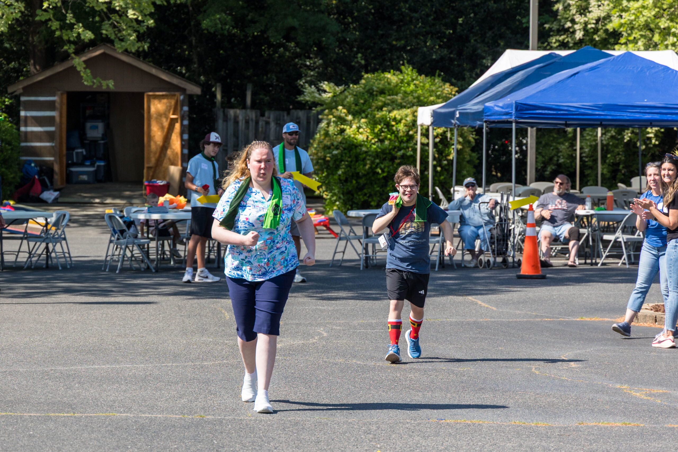 It was a cool morning as staff and volunteers transformed the parking lot into the staging area for the day’s events. The pavement held the racing course, and the grassy areas next to and behind the picnic shelter became softball and bocce zones.