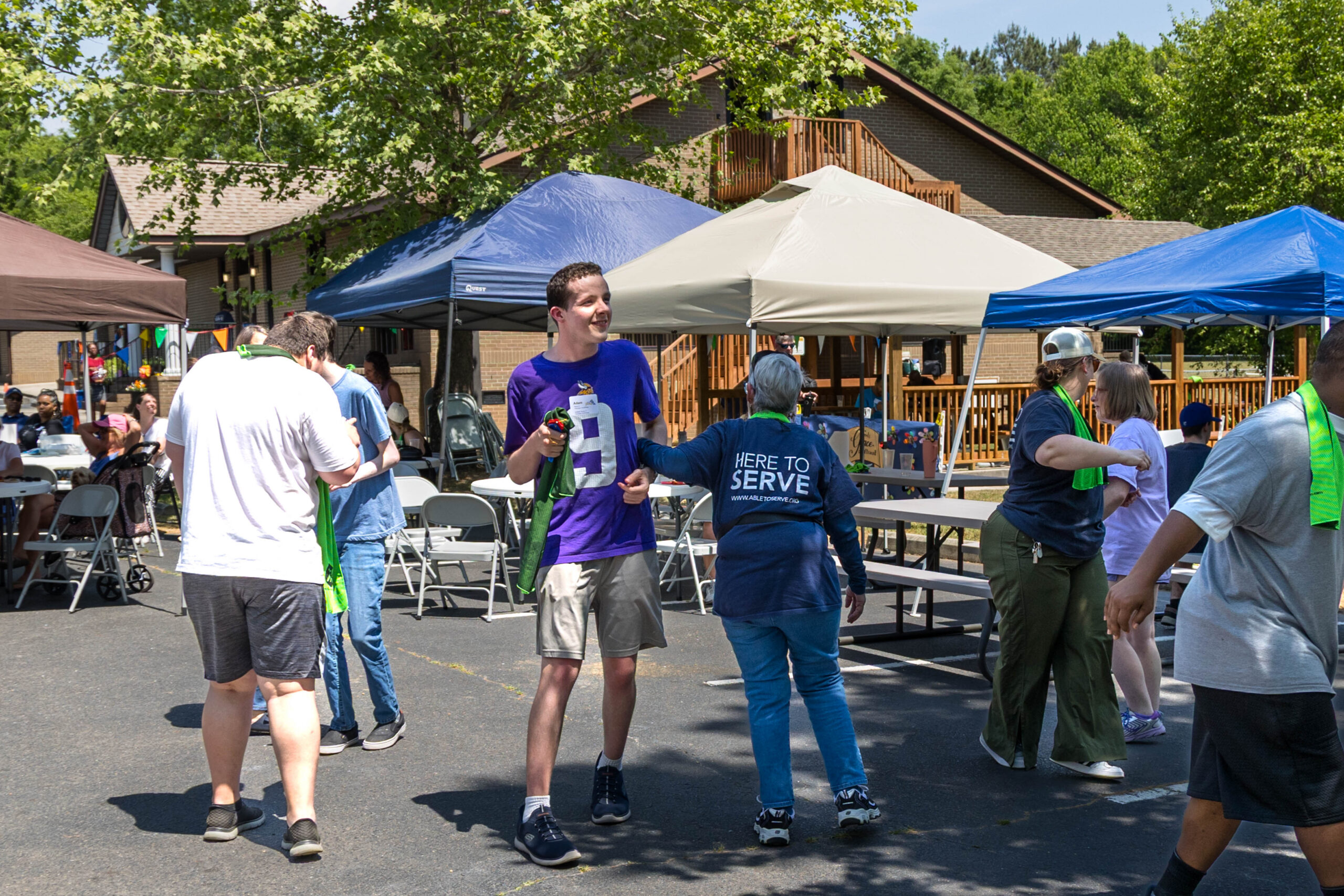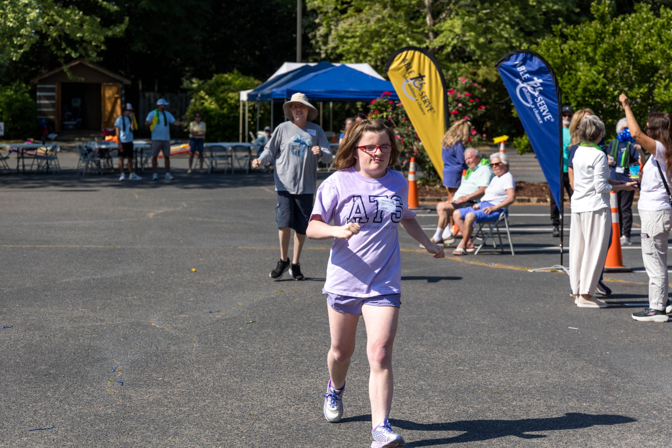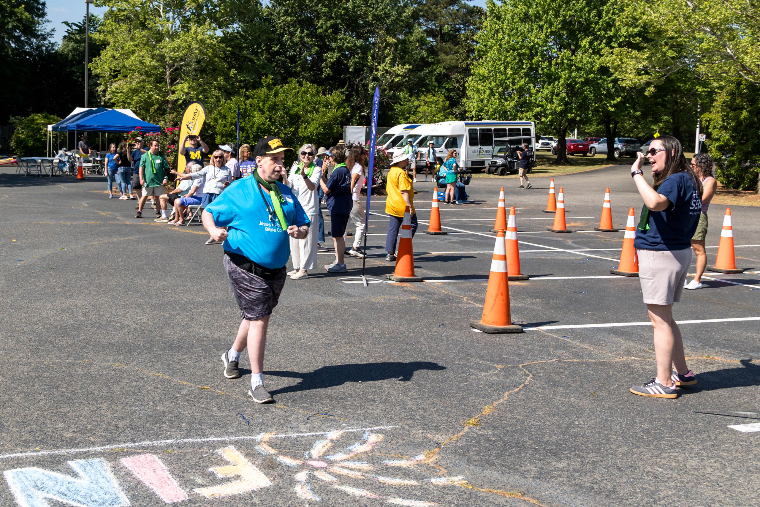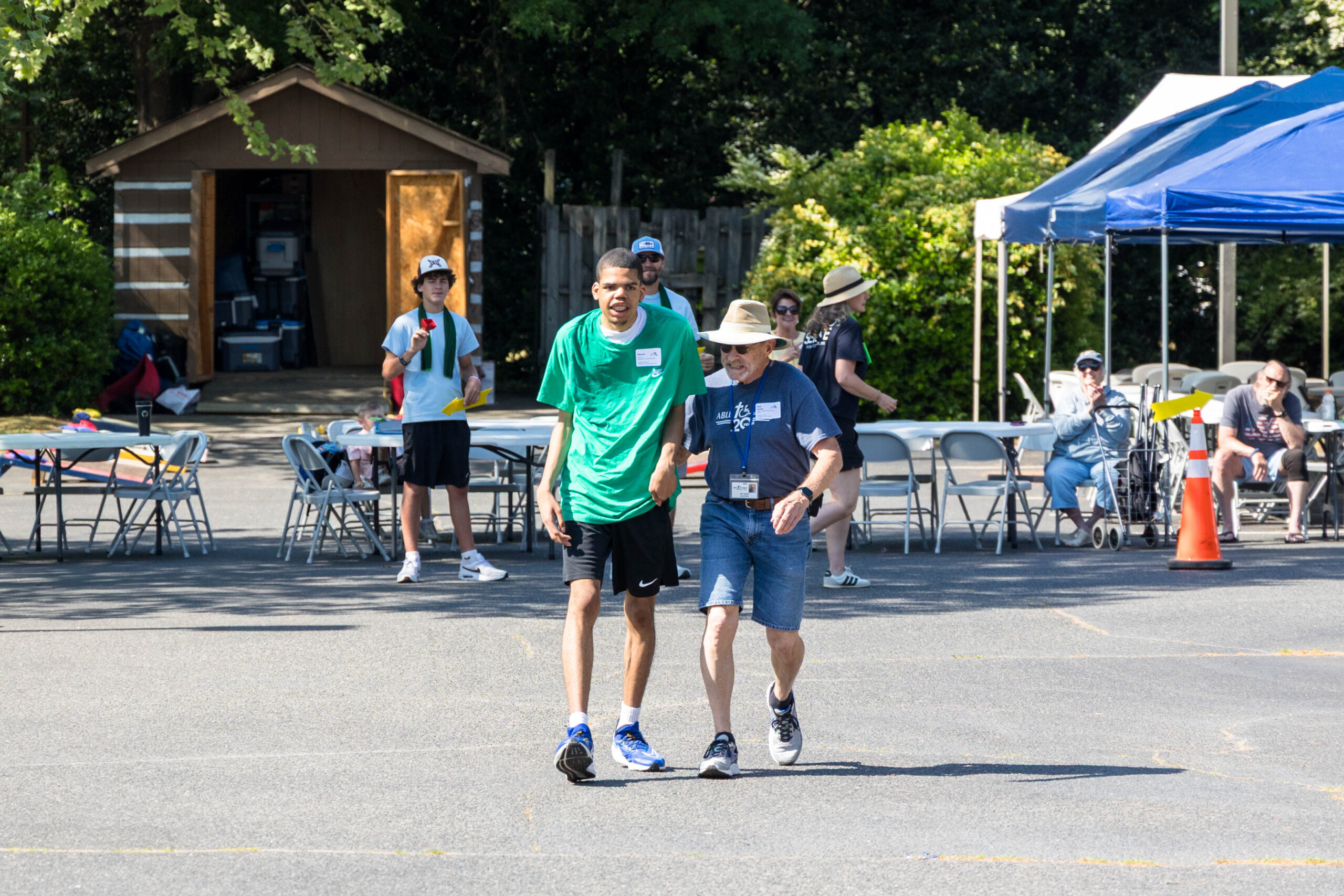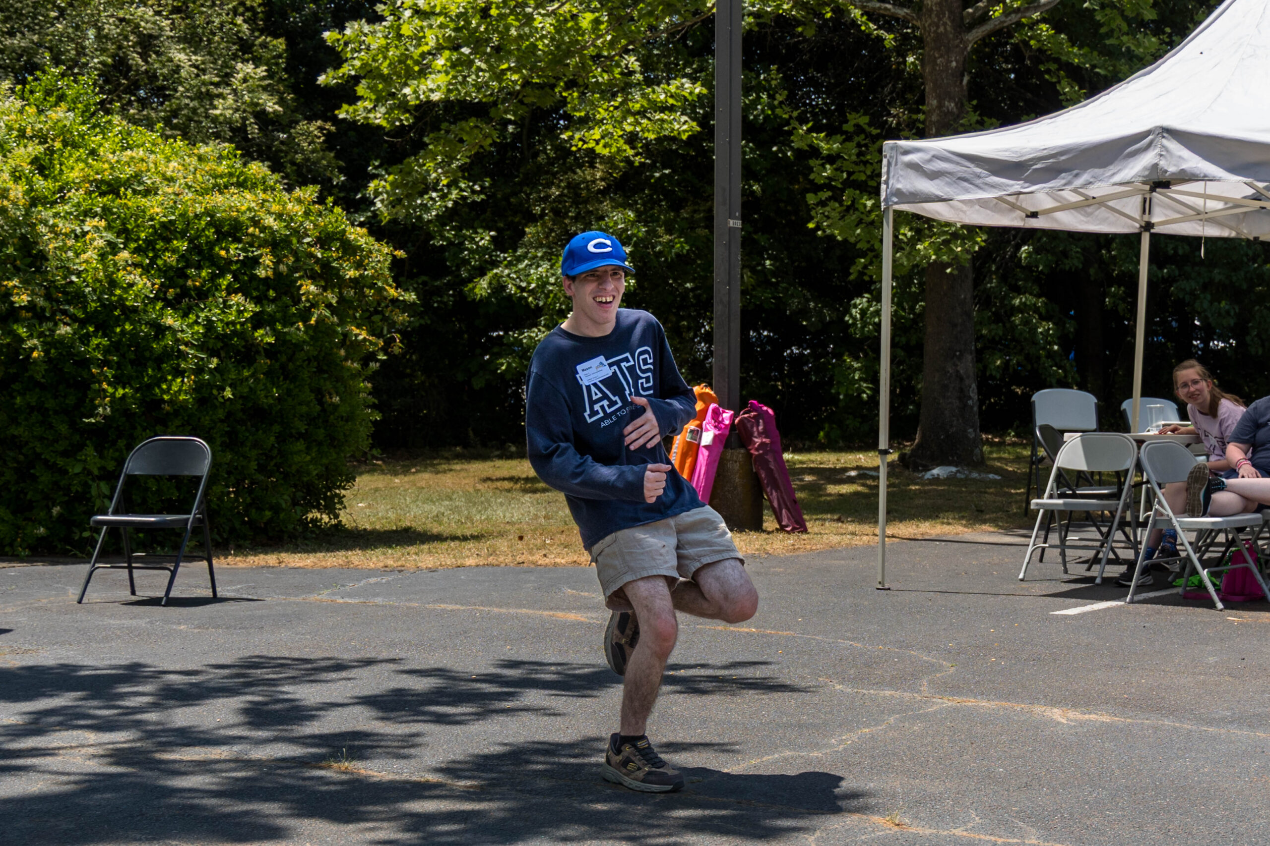 We had nineteen teams of 2-4 athletes, paired with ATS volunteers and a supporters from Apex Baptist Church. Participant Corbin proudly announced that they were from his church, and they all knew him. He was thrilled to have his beloved church friends cheering for him.