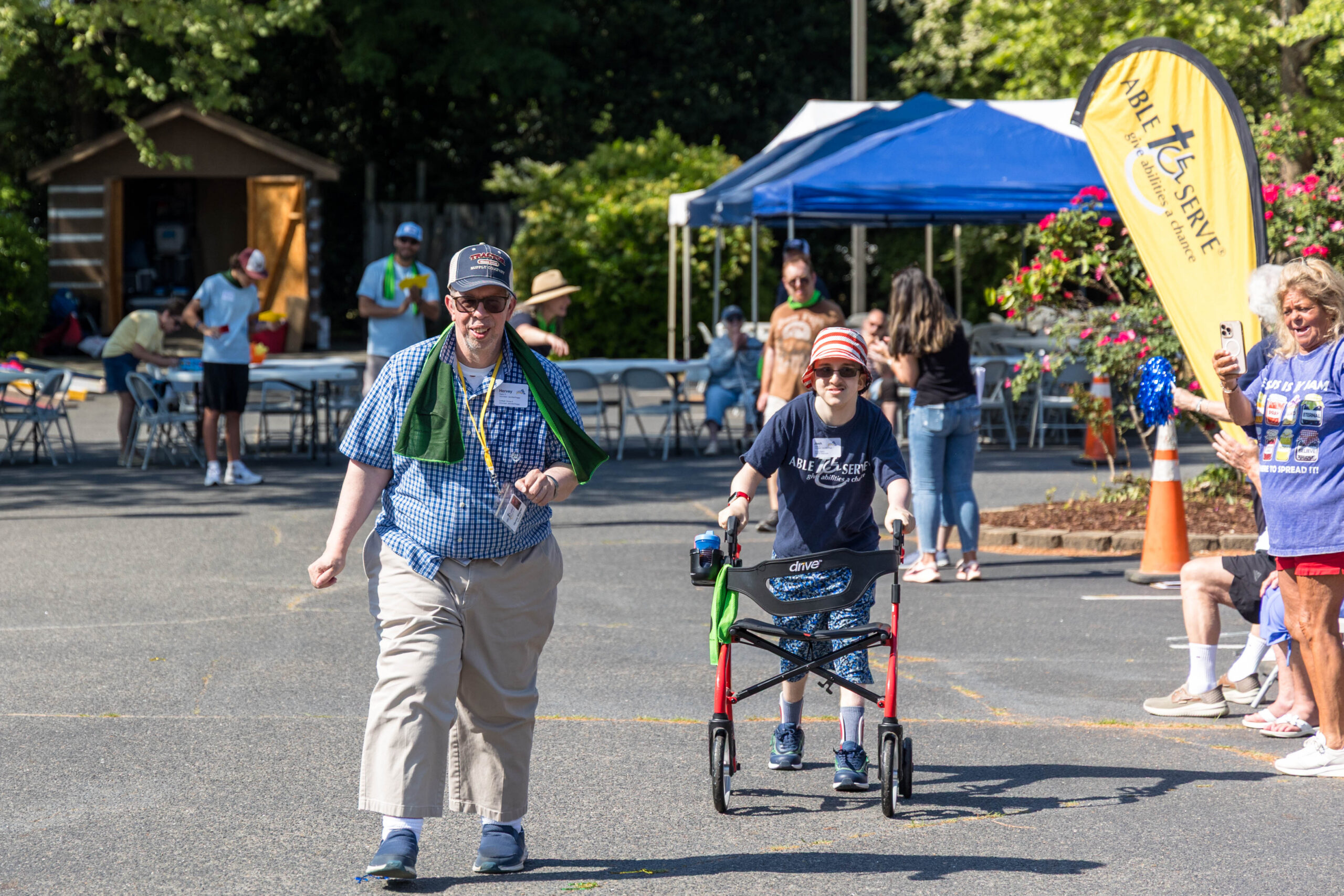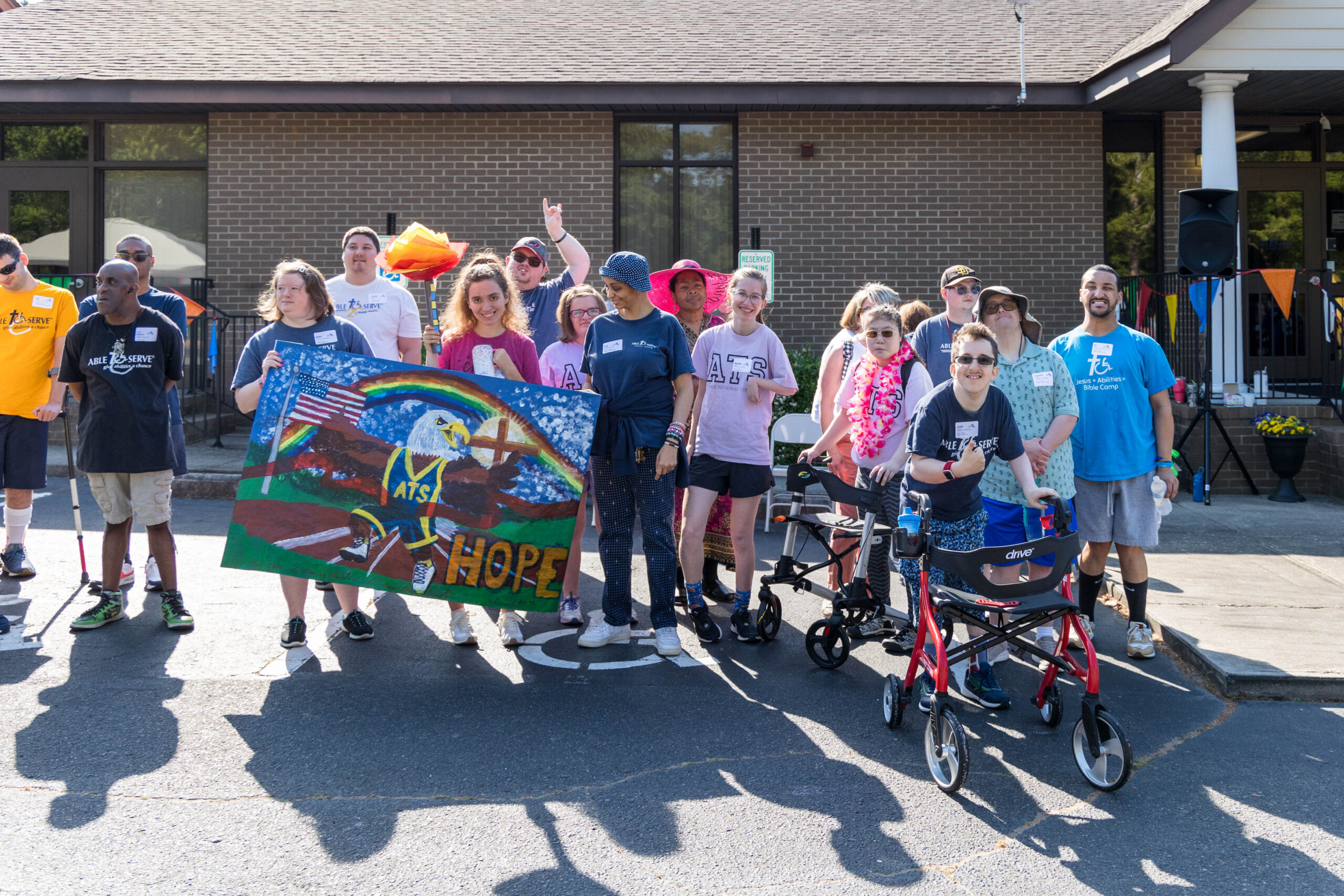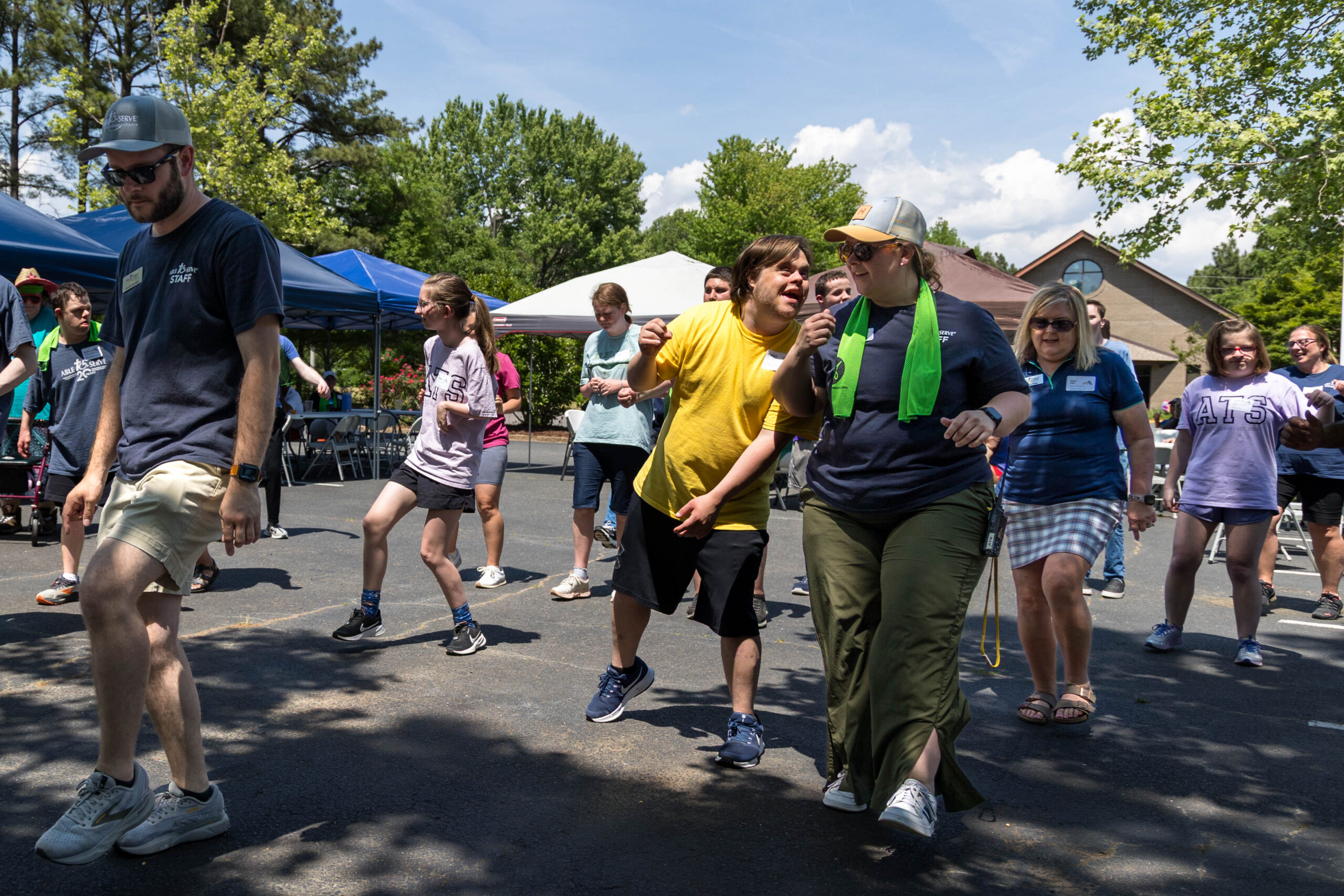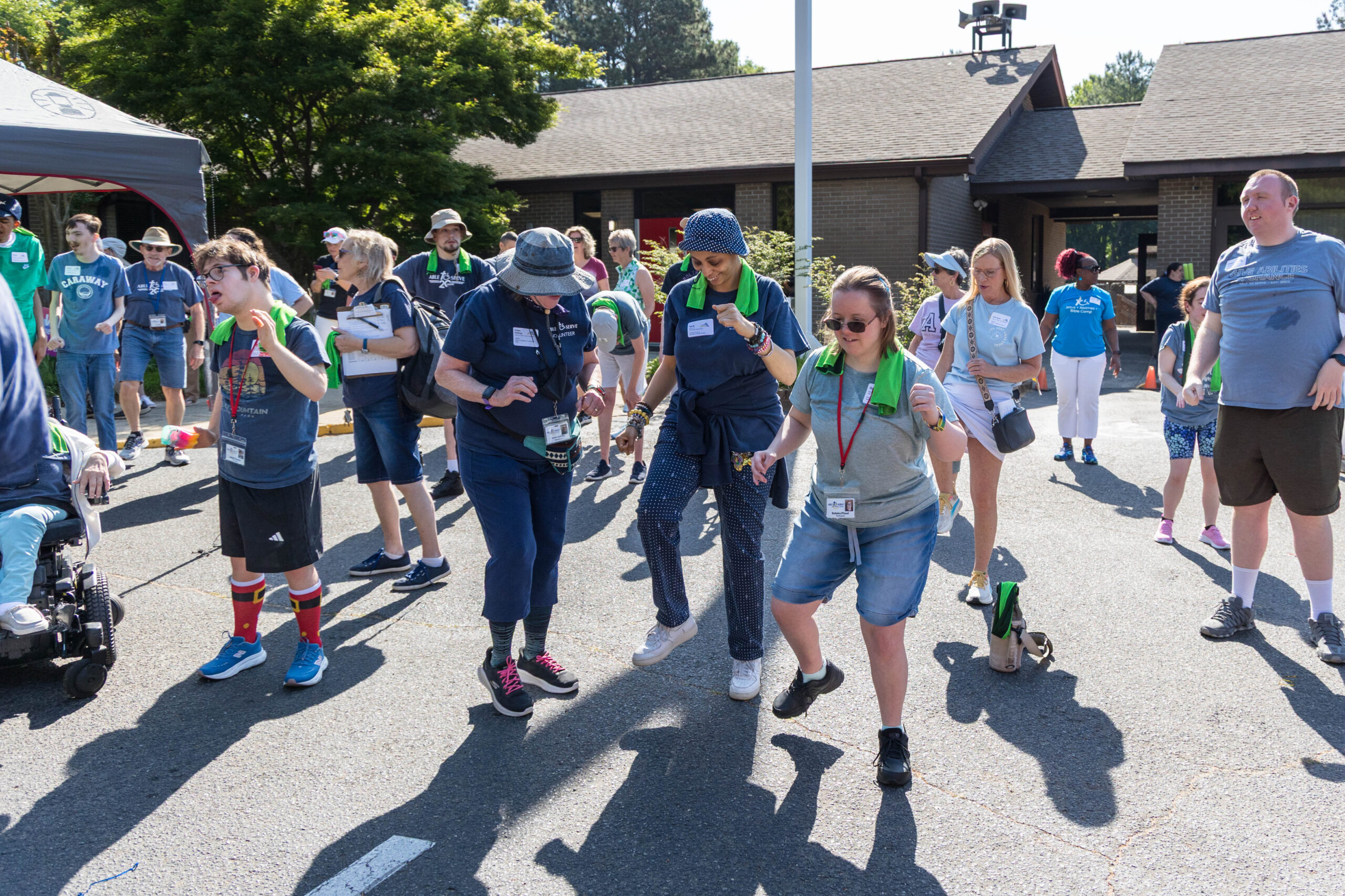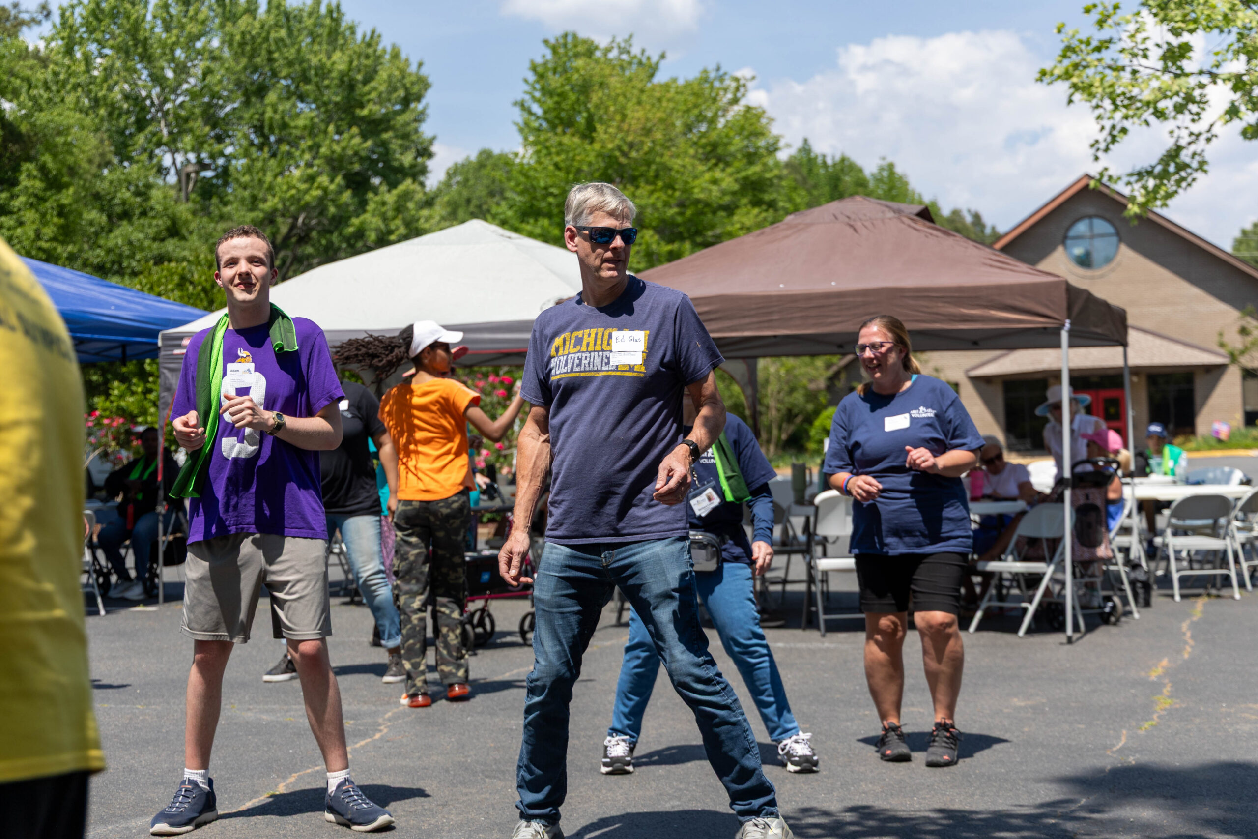 We had nineteen teams of 2-4 athletes, paired with ATS volunteers and a supporters from Apex Baptist Church. Participant Corbin proudly announced that they were from his church, and they all knew him. He was thrilled to have his beloved church friends cheering for him.