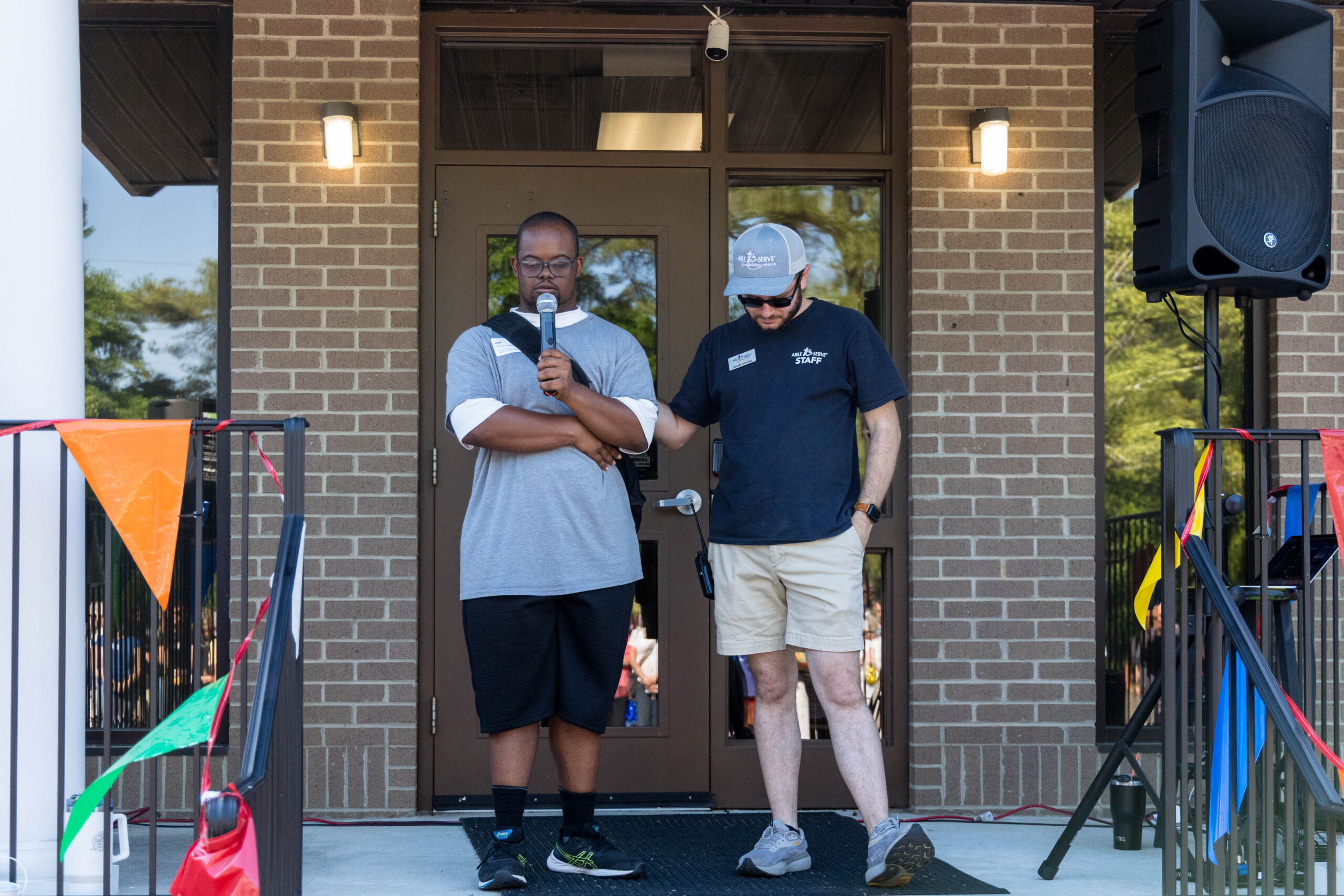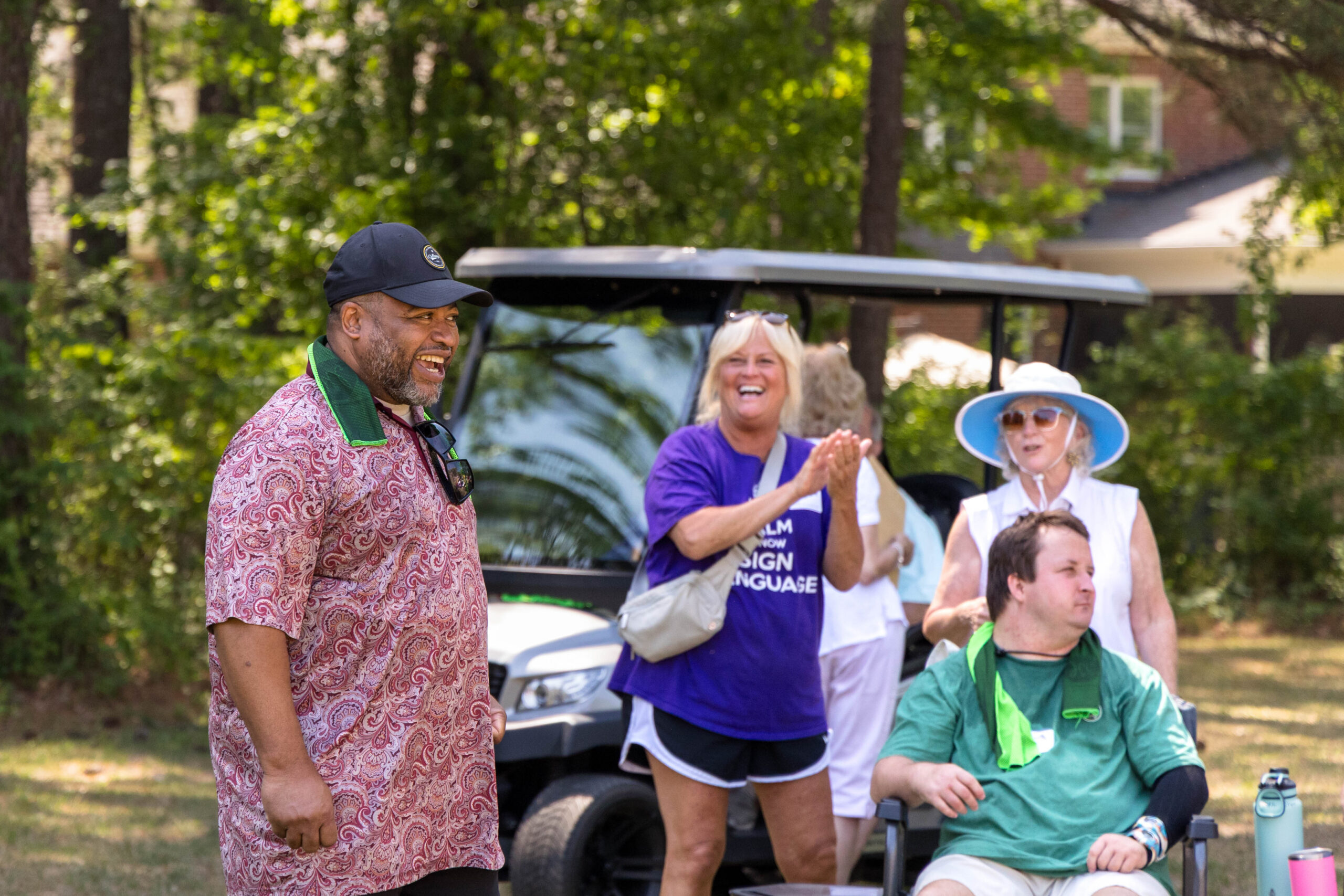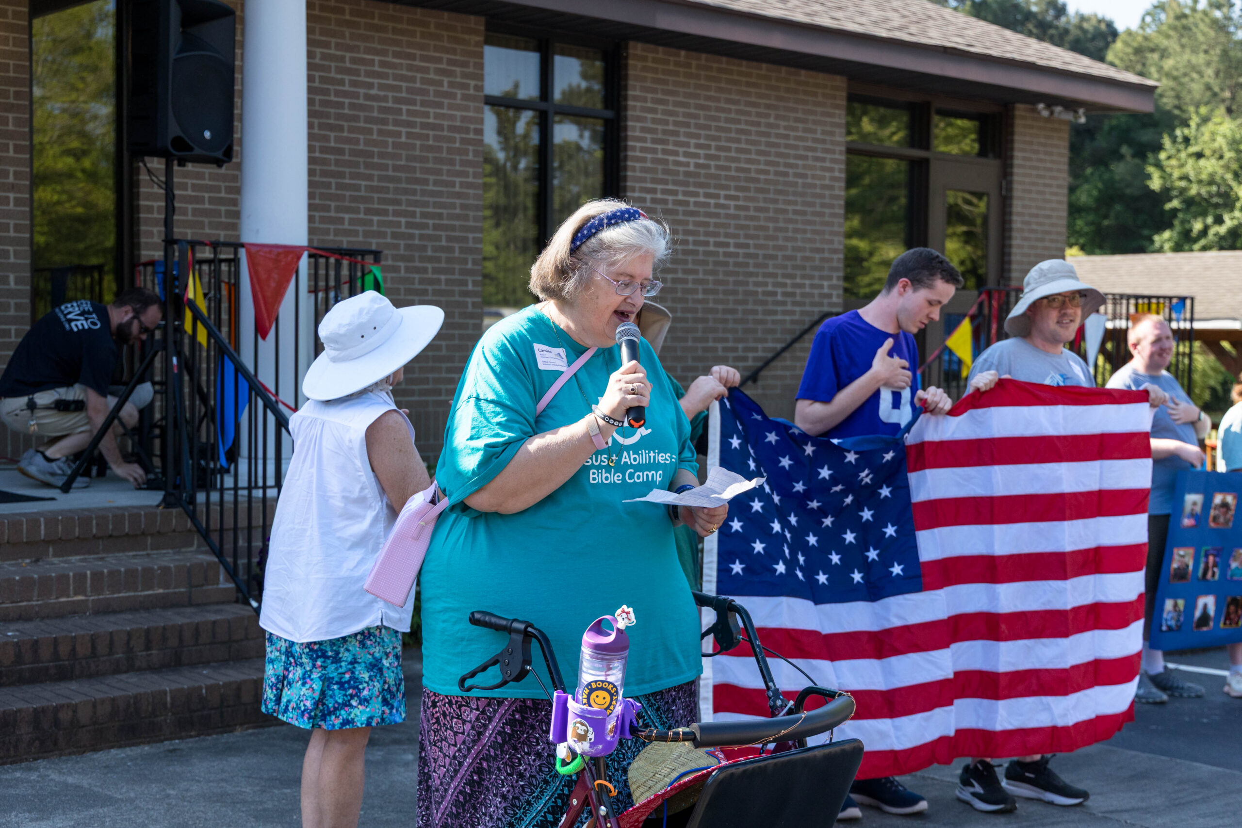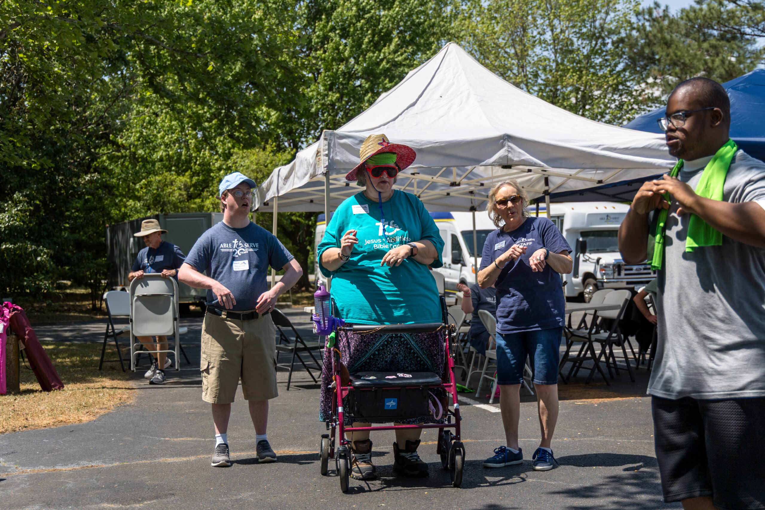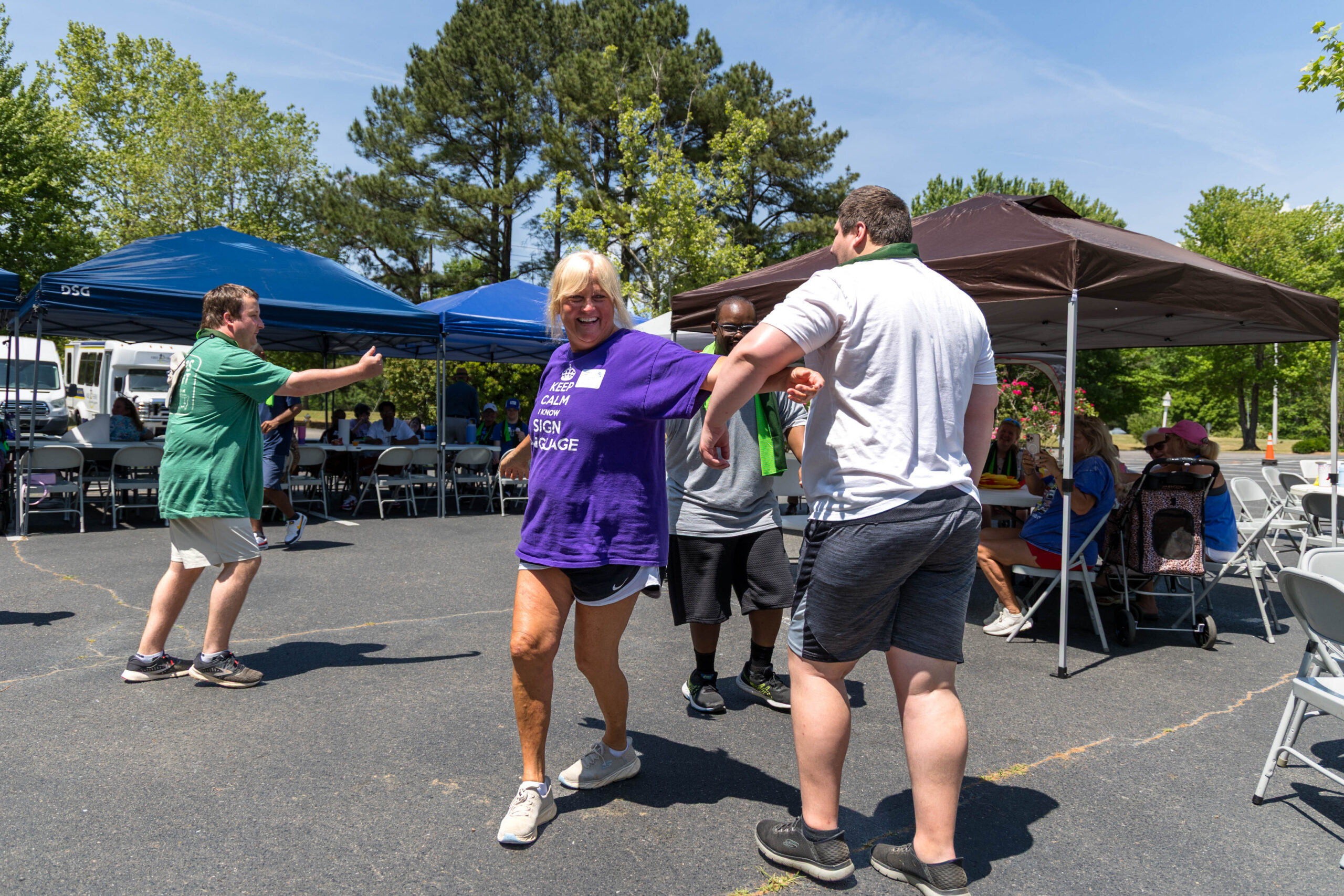 We had nineteen teams of 2-4 athletes, paired with ATS volunteers and a supporters from Apex Baptist Church. Participant Corbin proudly announced that they were from his church, and they all knew him. He was thrilled to have his beloved church friends cheering for him.