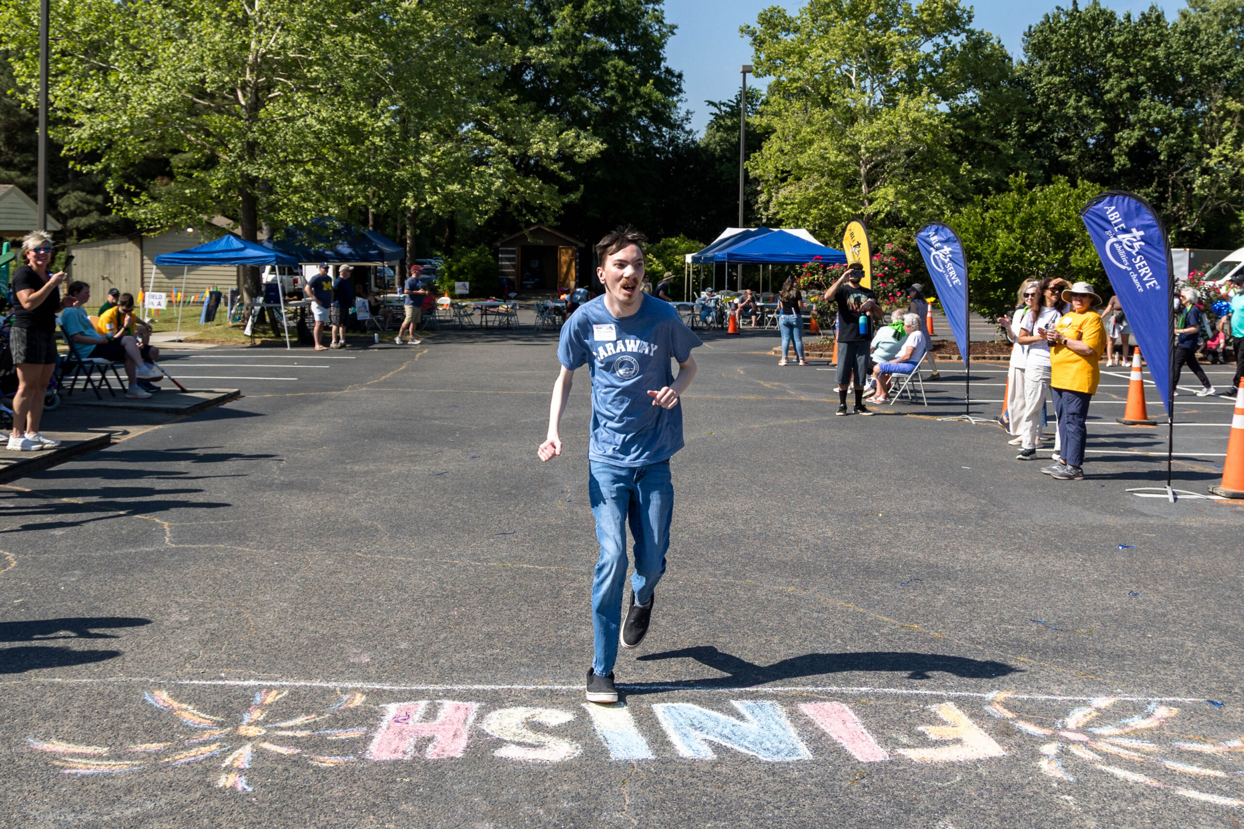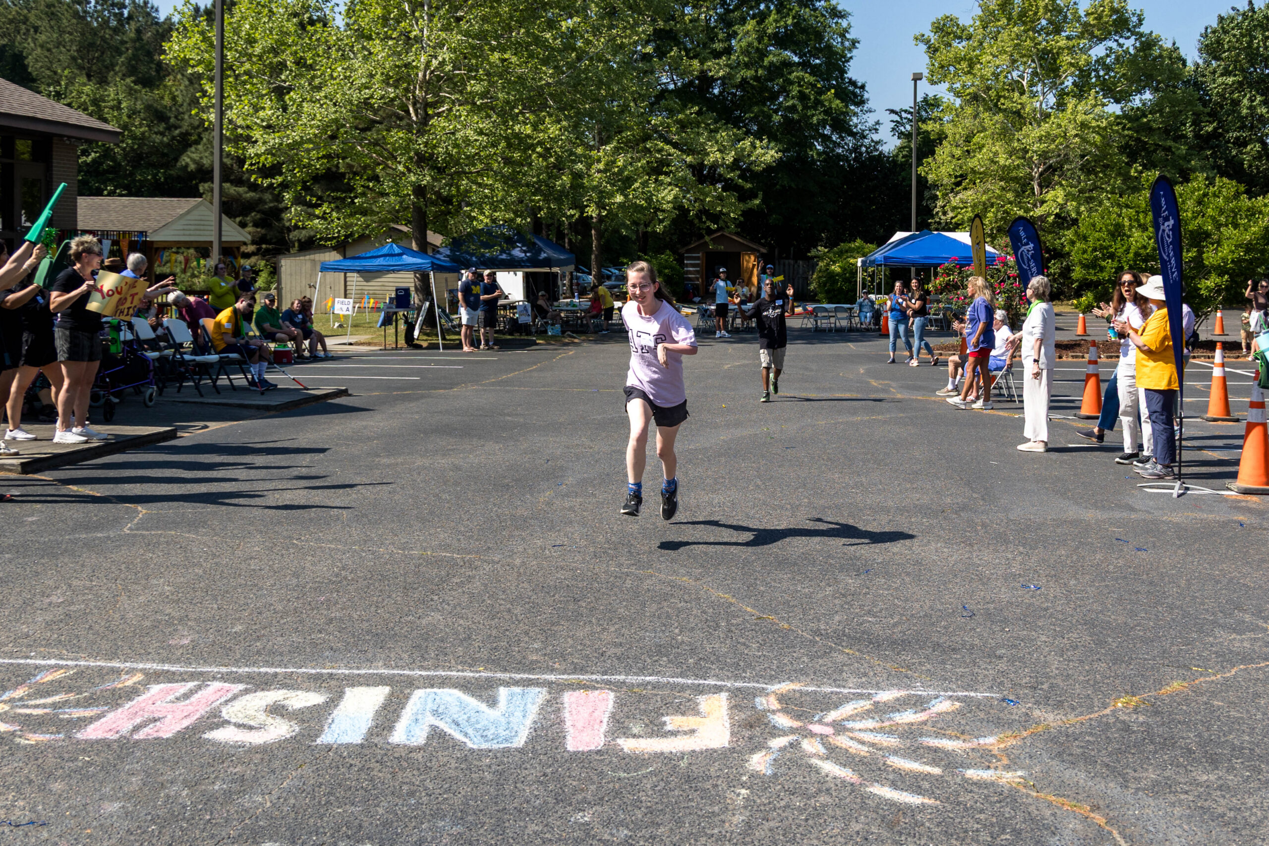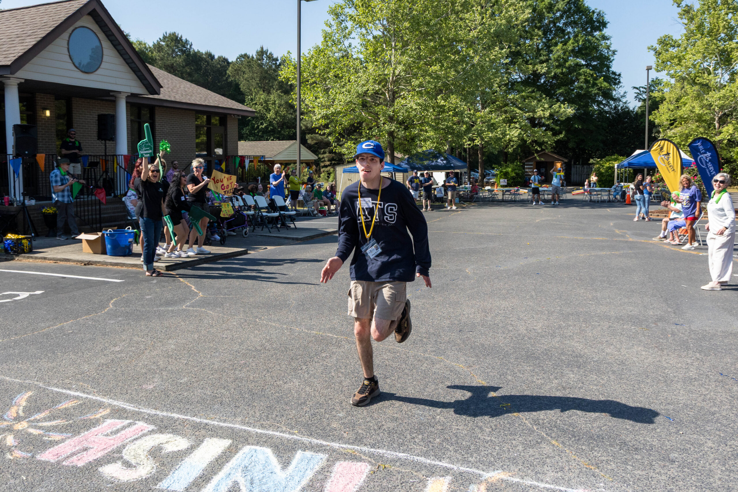 “I did it!” Proclaimed participant Bryan as he triumphantly crossed the colorfully chalked-in-the-asphalt finish line, and received high-fives.