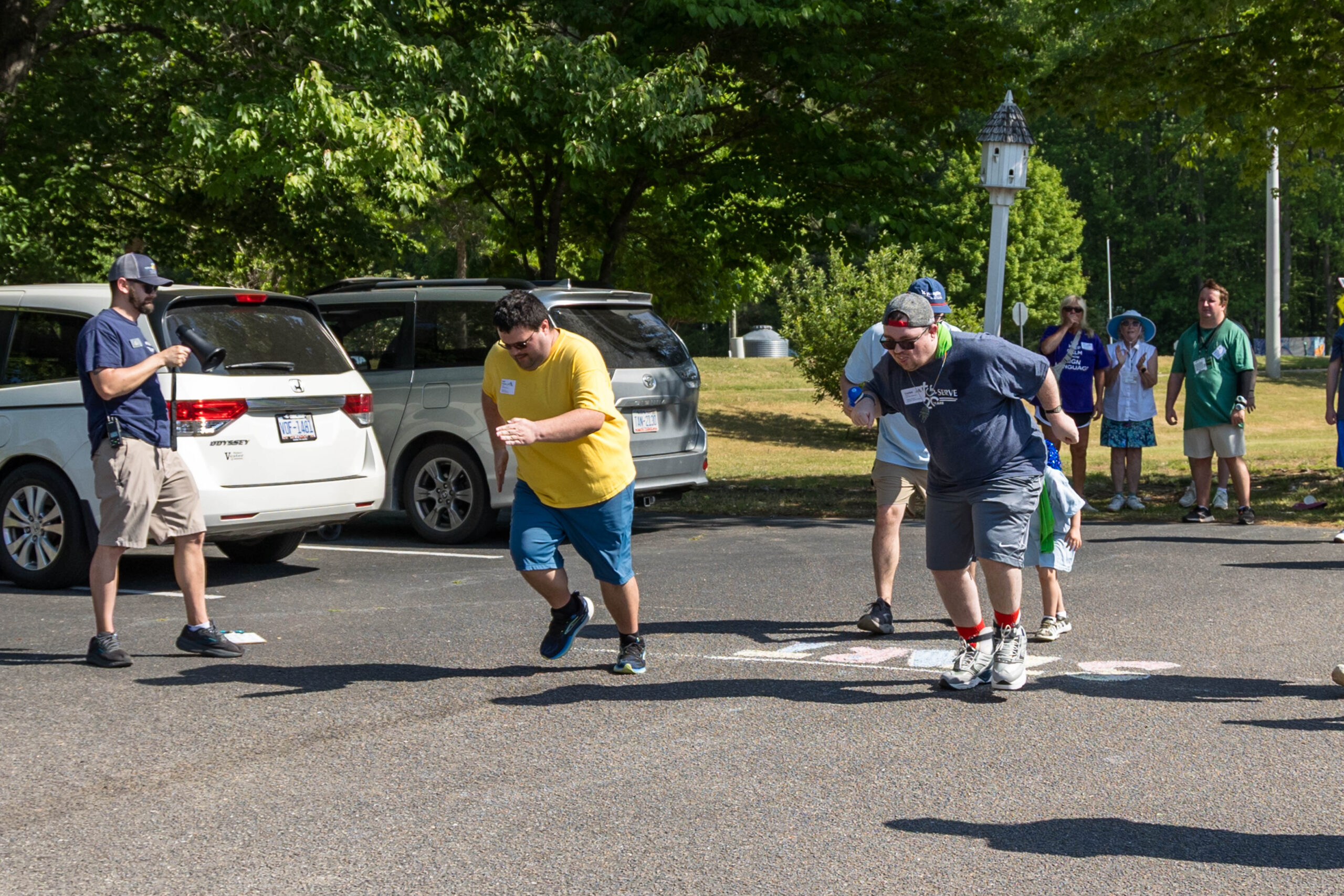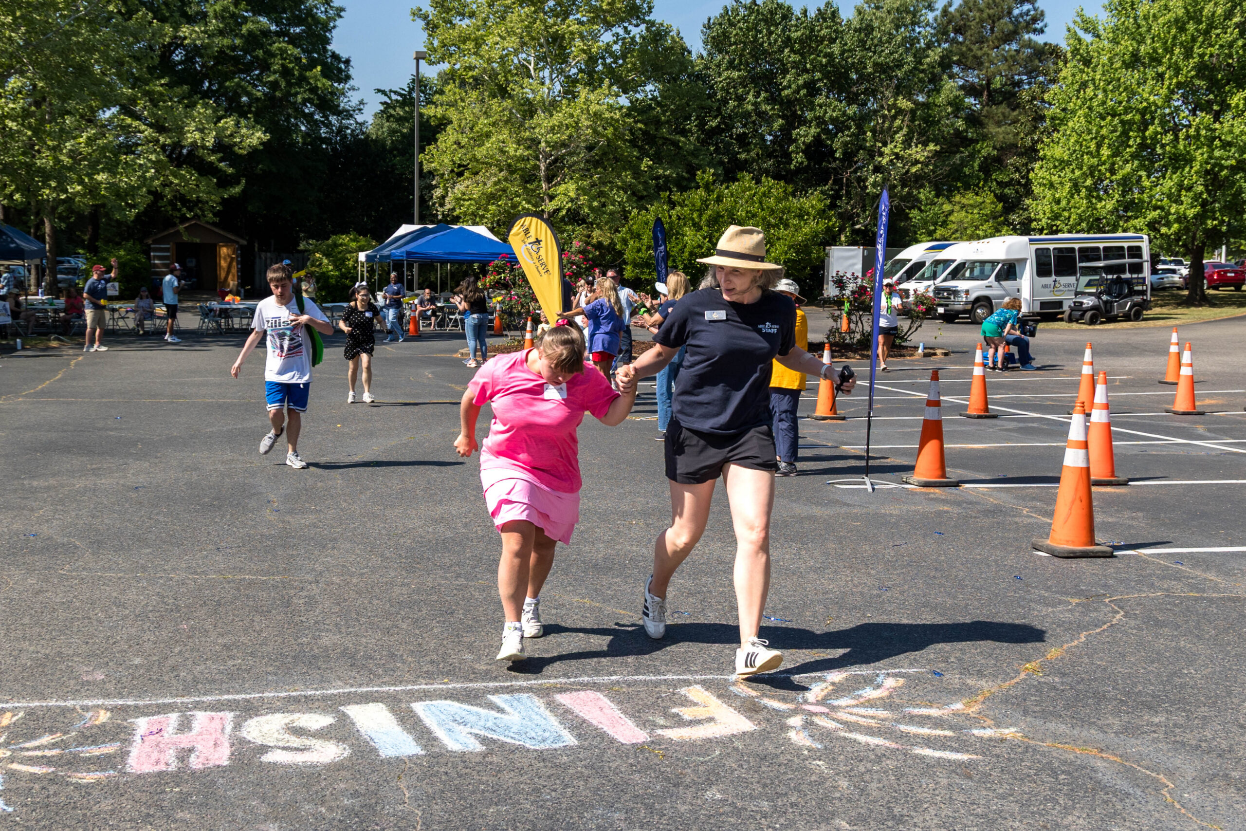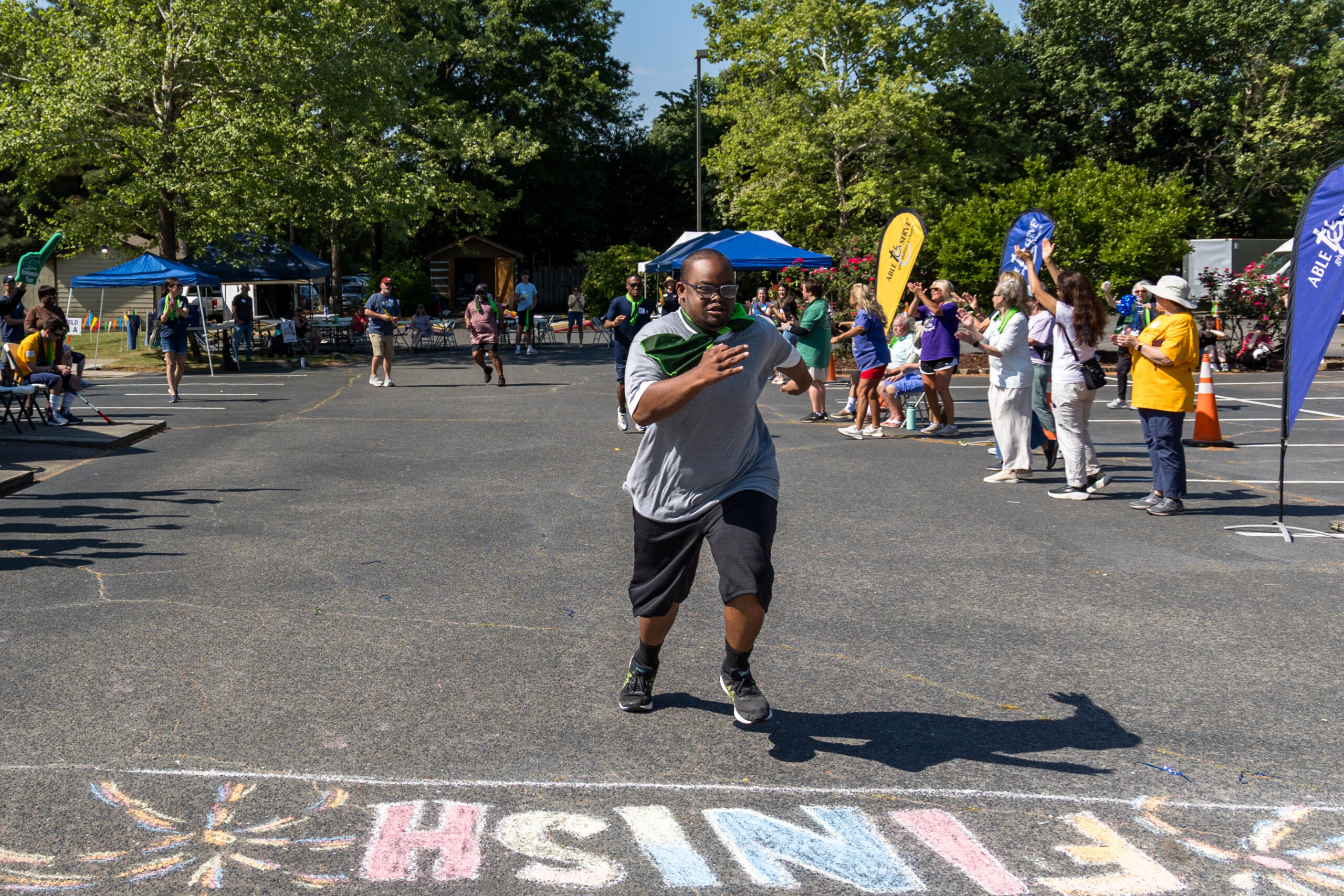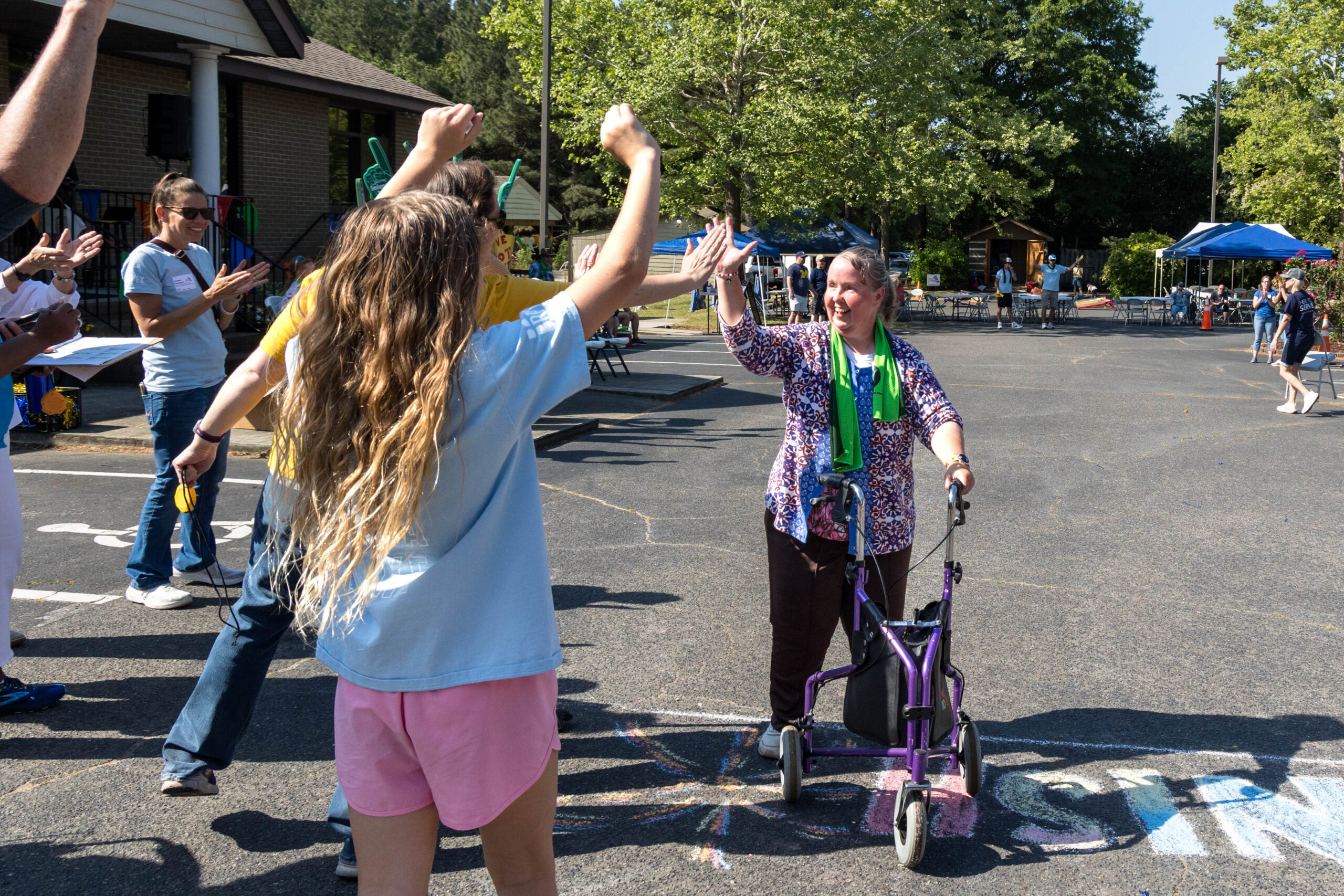 “I did it!” Proclaimed participant Bryan as he triumphantly crossed the colorfully chalked-in-the-asphalt finish line, and received high-fives.